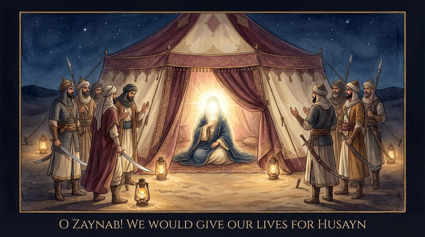 On that night, when Zaynab asked Husayn whether he trusted his companions, Habib ibn Mazahir gathered all the companions around Zaynab’s tent. They began to reassure her: