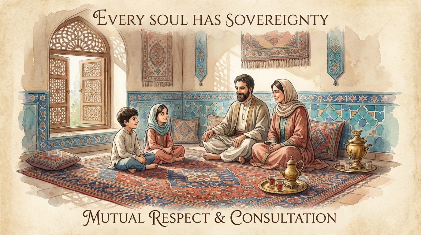 This establishes clear roles while emphasizing mutual respect and consultation. Men should recognize women’s authority in household matters, and women should acknowledge men’s overall family leadership. Both should work together to create an environment where Wilayah-oriented values can flourish.
