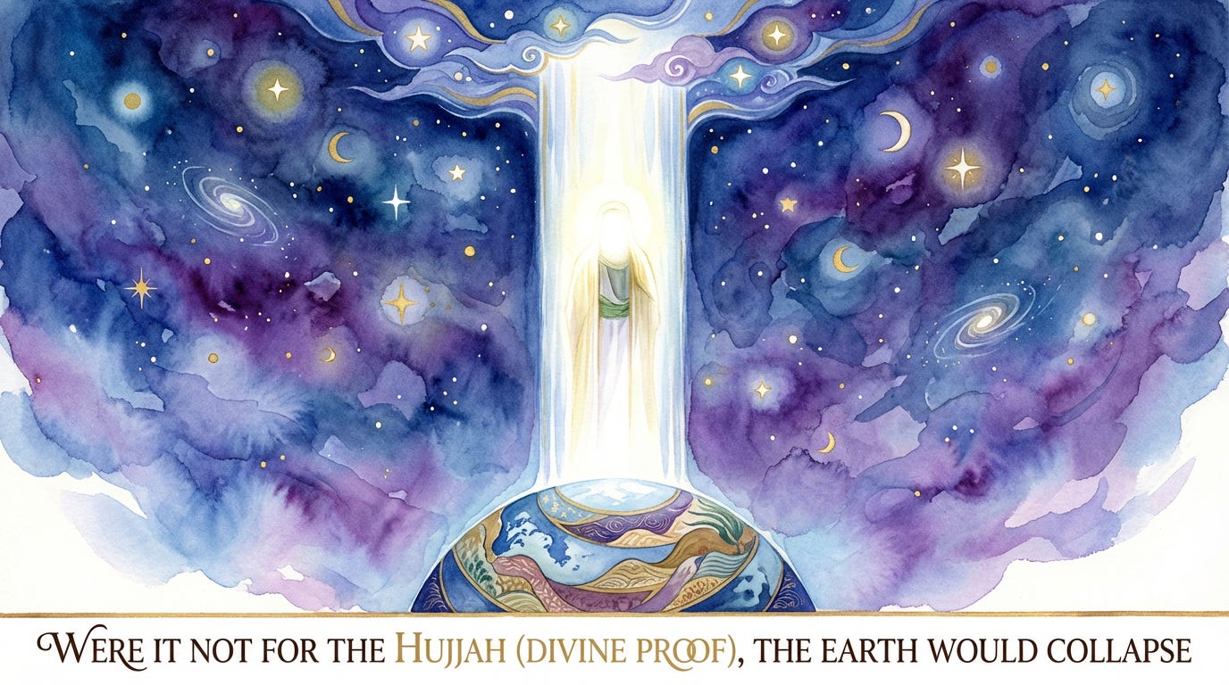 When entering the discussion of Wilayah in mystical contexts, one discovers that the entire universe is established based on the blessing of the sacred existence of the Greatest Wali of Allah (divine guardian). As the tradition states: ‘Were it not for the Hujjah (divine proof), the earth would collapse.’ Mystics in their discussions never leave humanity and God alone. They consider it necessary for the Wali of Allah to be the mediator between humanity and God for the continuation of the world’s existence, providing the ground and foundation for human life.